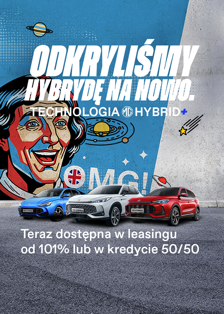 Dla modeli: MG ZS Classic – zużycie paliwa w cyklu mieszanym (WLTP): 6,6-7,2 l/100 km, emisja CO2 w cyklu mieszanym (WLTP): 156 g/km, MG ZS (wersja benzynowa) – zużycie paliwa w cyklu mieszanym (WLTP): 6,5 l/ 100 km, emisja CO2 w cyklu mieszanym (WLTP): 145 g/km, MG ZS Hybrid+ – zużycie paliwa w cyklu mieszanym (WLTP): 5,0-5,1 l/ 100 km, emisja CO2 w cyklu mieszanym (WLTP): 113-115 100 g/km, MG HS (wersja benzynowa) – zużycie paliwa w cyklu mieszanym (WLTP): 7,4-7,6 l/100 km, emisja CO2 w cyklu mieszanym (WLTP): 168-173 g/km, MG HS Hybrid+ (HEV) – zużycie paliwa w cyklu mieszanym (WLTP): 5,5 l/100 km, emisja CO2 w cyklu mieszanym (WLTP): 126 g/km, MG HS Plug-In Hybrid (PHEV) – zużycie paliwa w cyklu mieszanym (WLTP): 0,54 l/100 km, emisja CO2 w cyklu mieszanym (WLTP): 14 g/km, MG3 (wersja benzynowa) – zużycie paliwa w cyklu mieszanym (WLTP): 6,1 l/100 km, emisja CO2 w cyklu mieszanym (WLTP): 137 g/km, MG3 Hybrid+ (HEV) – zużycie paliwa w cyklu mieszanym (WLTP): 4,4 l/100 km, emisja CO2 w cyklu mieszanym (WLTP )100 g/km, MGS5 EV – zużycie energii elektrycznej: 109-169 Wh/km, zasięg EV (WLTP): 335-682 km, MG4 – zużycie energii elektrycznej: 160-190 Wh/km, zasięg EV (WLTP): 330-530 km, MG Cyberster – zużycie energii elektrycznej: 167-191 Wh/km, zasięg EV (WLTP): 443-507 km. Wartości określa się na podstawie metody pomiaru odnoszącej się do cyklu ważonego WLTP. Podane wartości określono w celach porównawczych. Informacje o działaniach dotyczących odzysku i recyklingu samochodów wycofanych z eksploatacji znajdują się u autoryzowanych dealerów marki MG. Informacje dotyczące „7-letniej potrójnej gwarancji” znajdują się na stronie www.mgmotor.pl/7-letnia-potrojna-gwarancja. Niniejsza informacja nie stanowi oferty w rozumieniu art. 66 Kodeksu cywilnego.